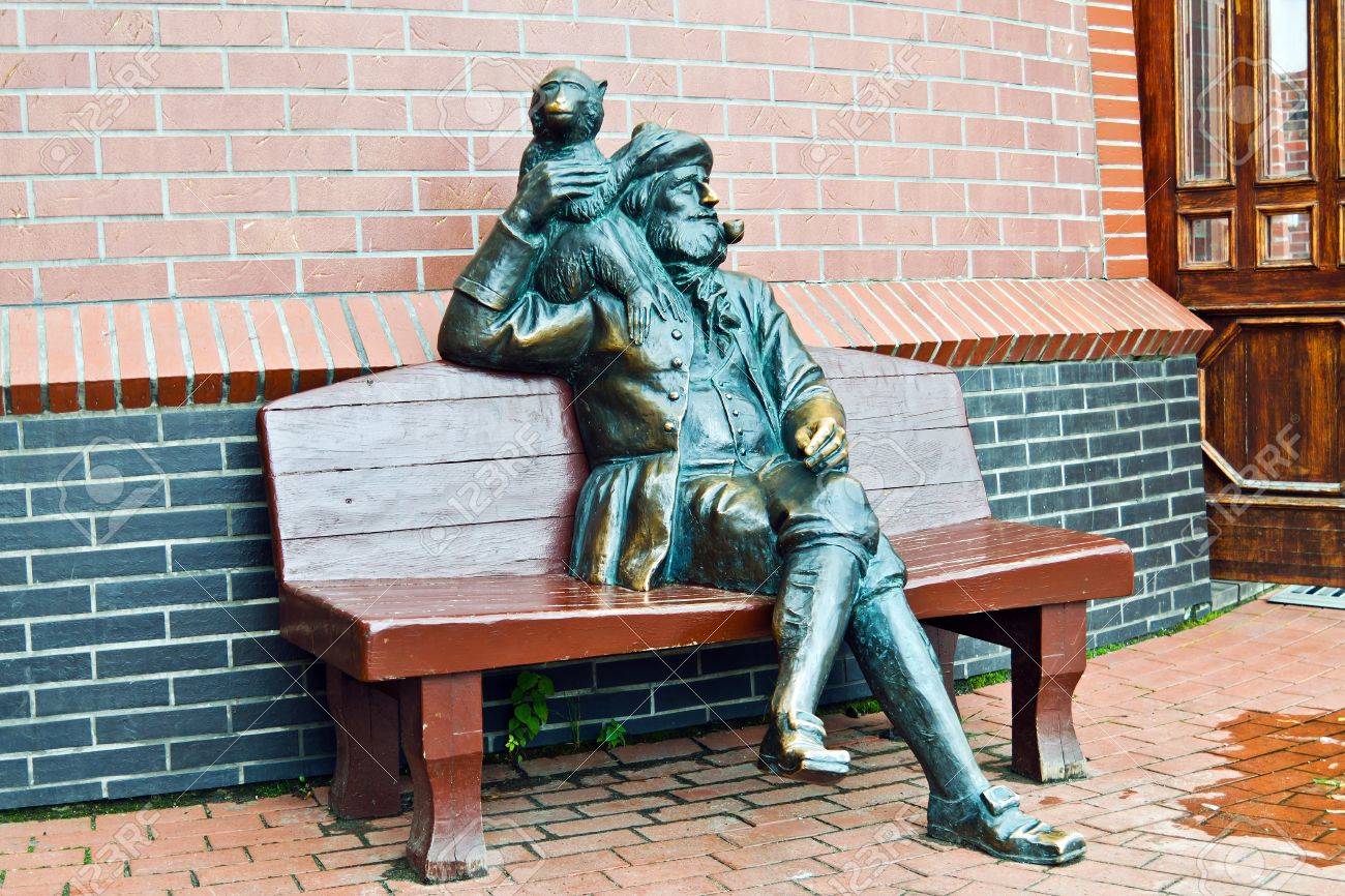 | 1514 | Vieux marin avec un singe sur son épaule sur un banc, sculpture, Kaliningrad, Russie | Old sailor with a monkey on his shoulder on a bench, sculpture, Kaliningrad, Russia | 1539 | bancs fleuris | flowers benches, ornate benches |