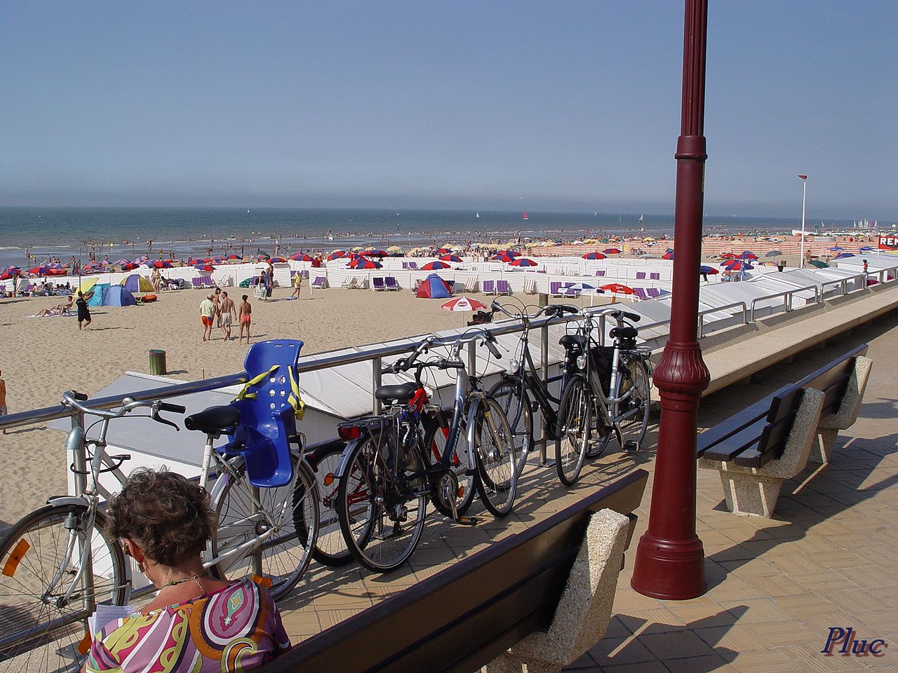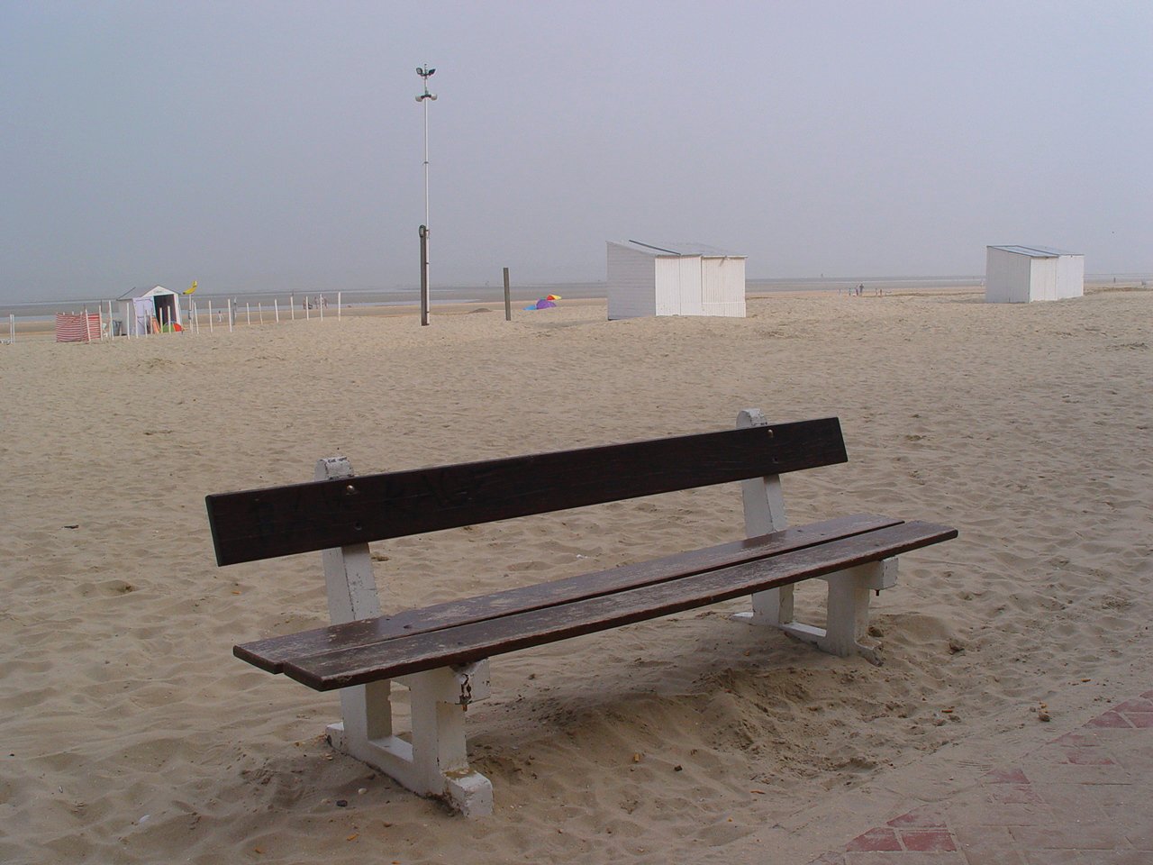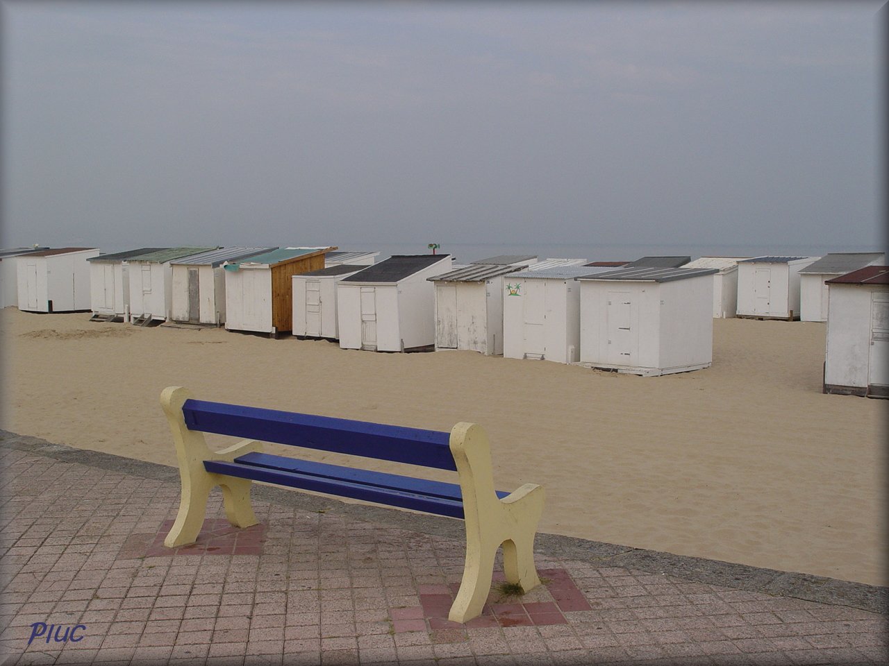 | plage de la côte d'Opale, les chalets en bois, la digue-promenade et les HLM construits dans les années 1970 | ||