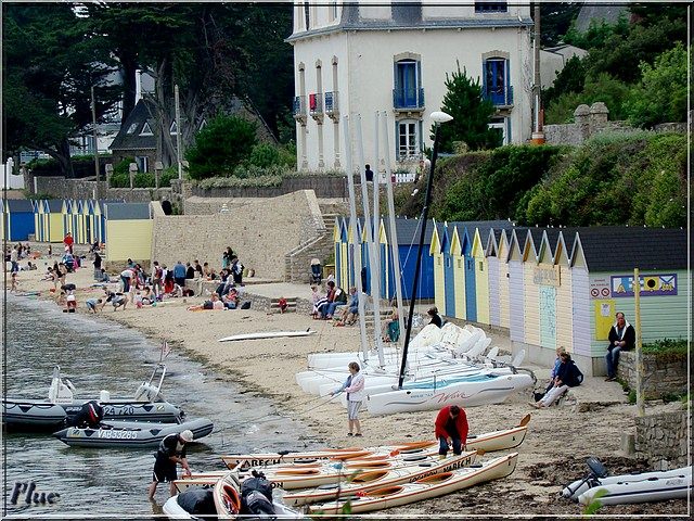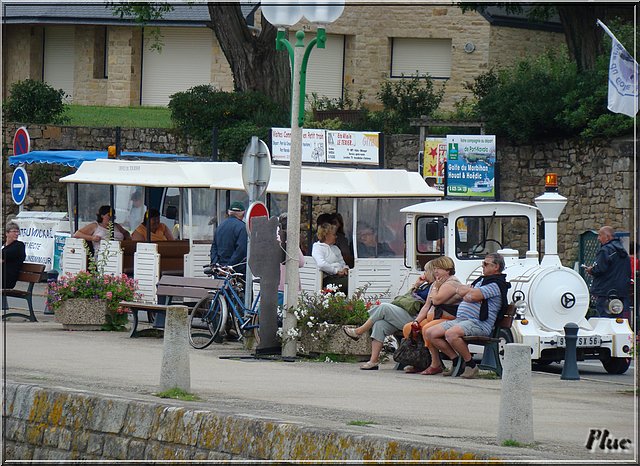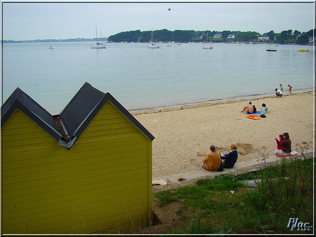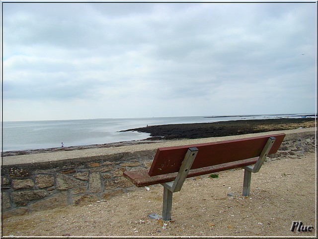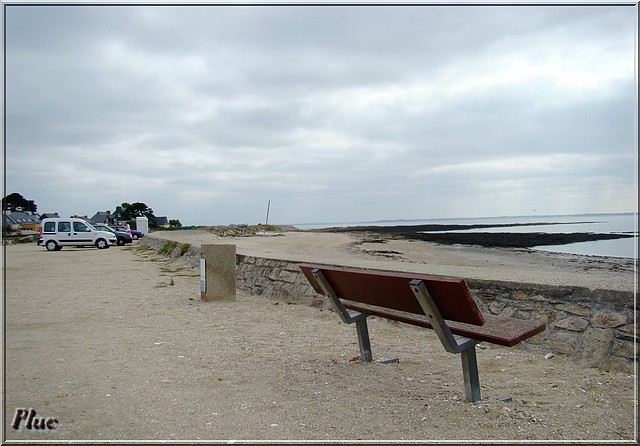 | Île aux Moines, bancs publics et bancs de fortune en bord de plage | ||