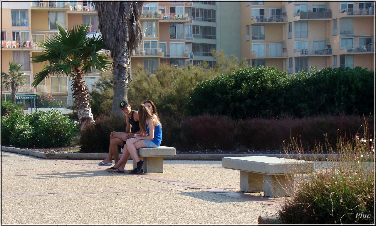 Bancs publics Le Barcarès, août 2011.