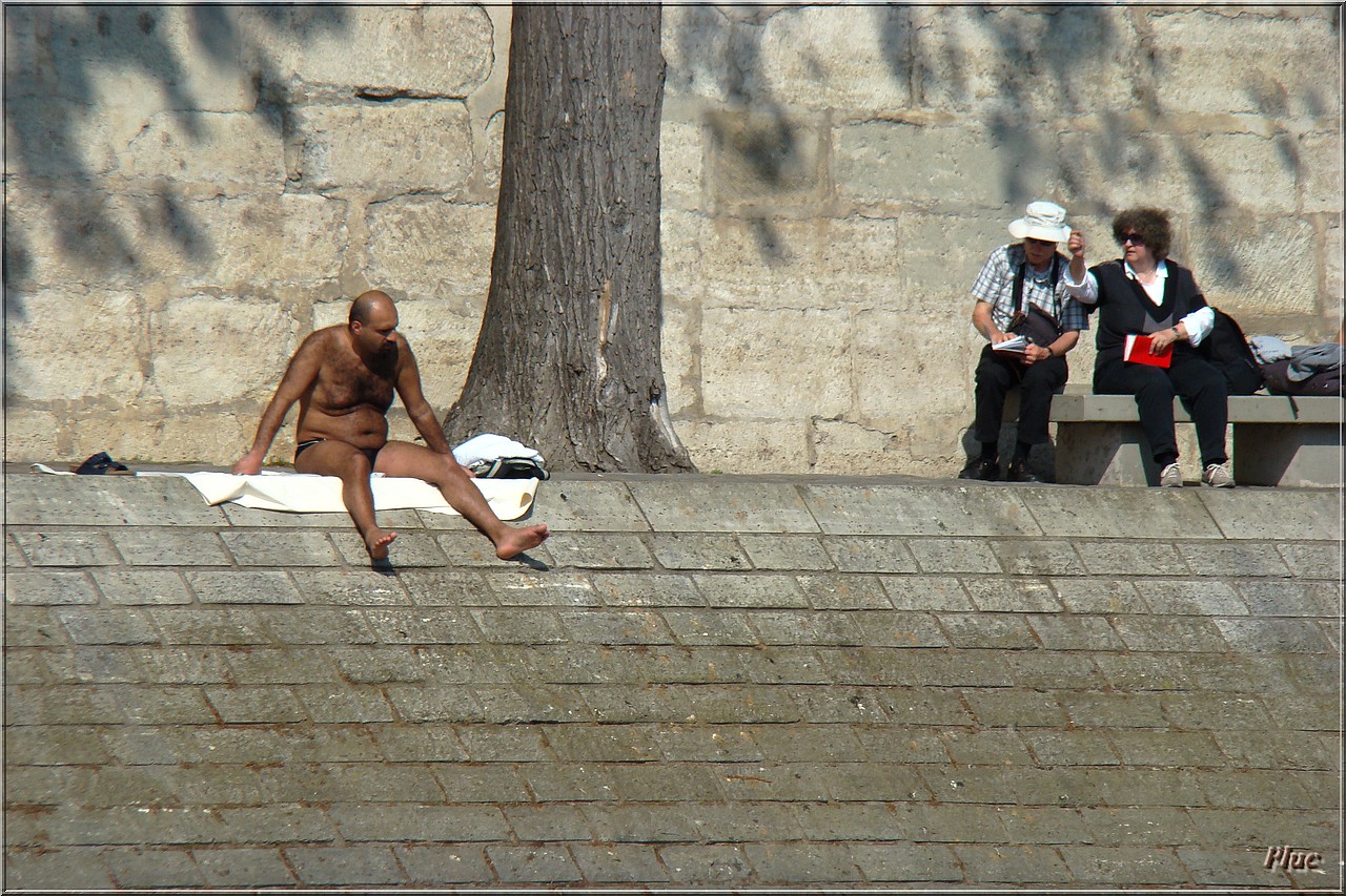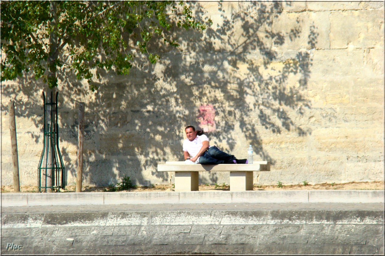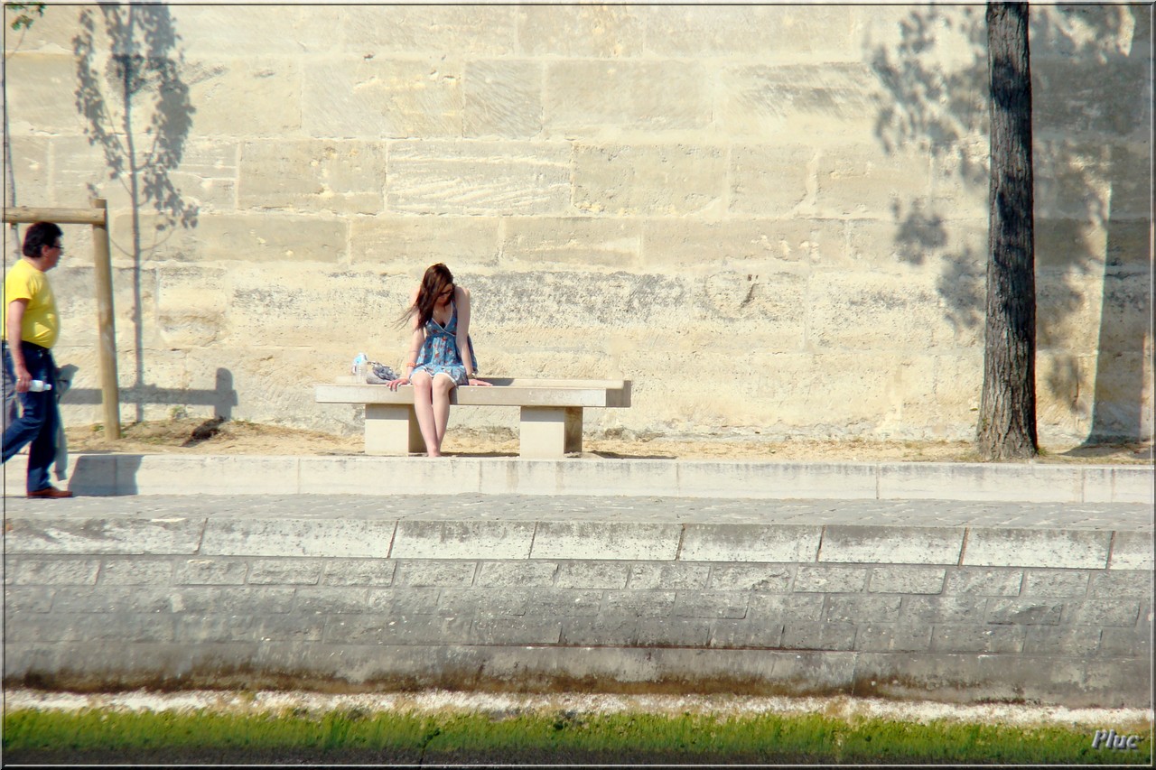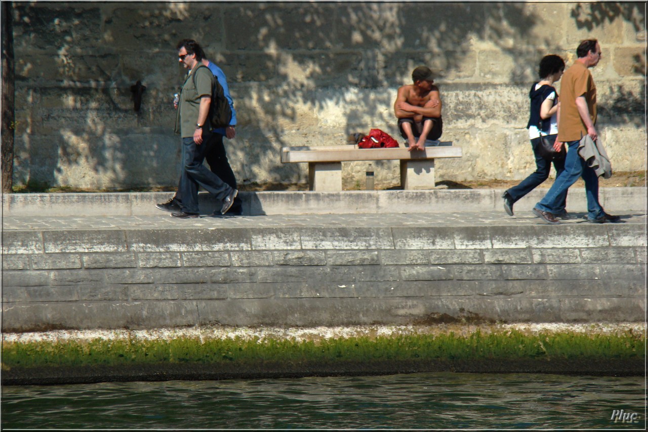 Bancs de Paris photographiés en avril 2011 ; quais de la Seine et parvis de la cathédrale .