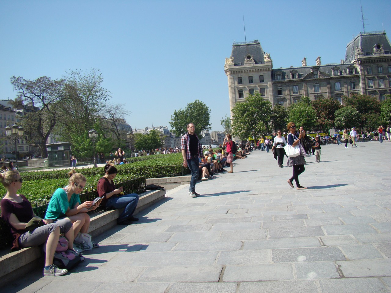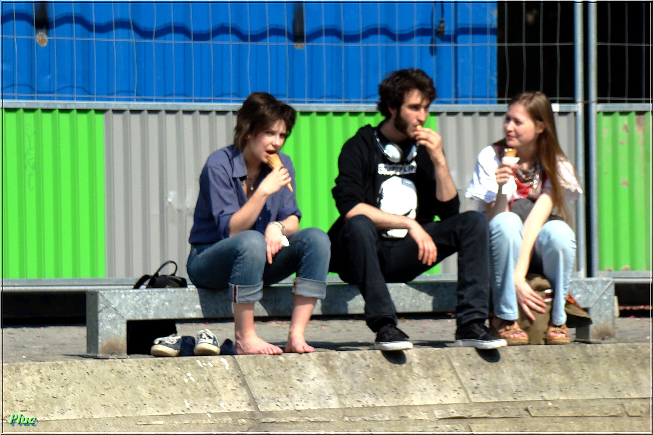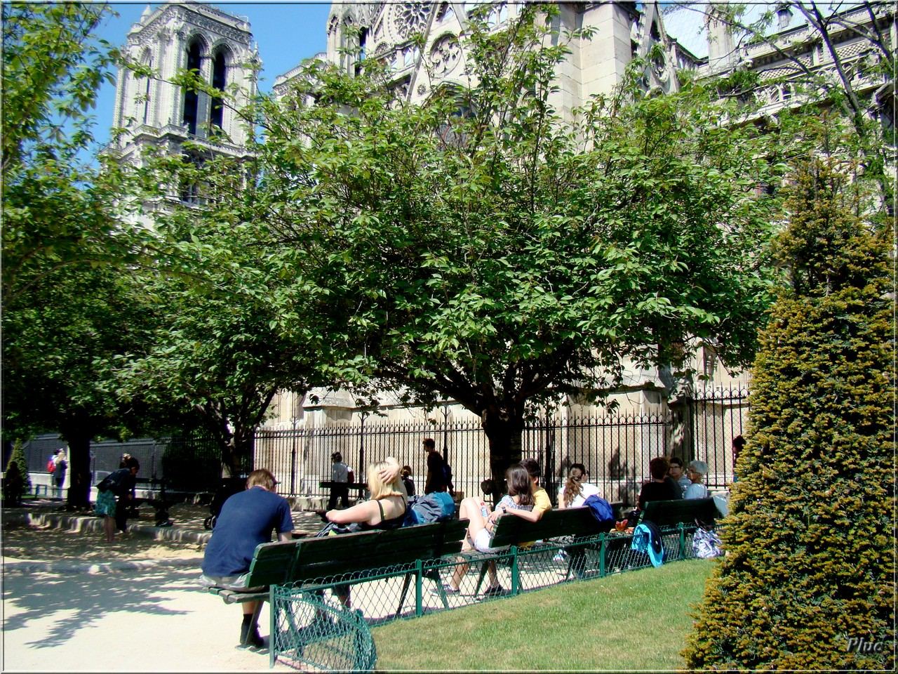 Bancs de Paris photographiés en avril 2011 ; quais de la Seine et parvis de la cathédrale .
